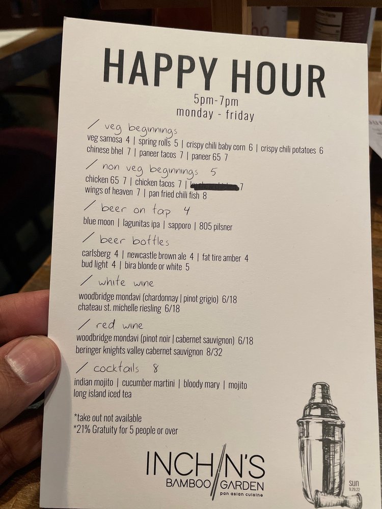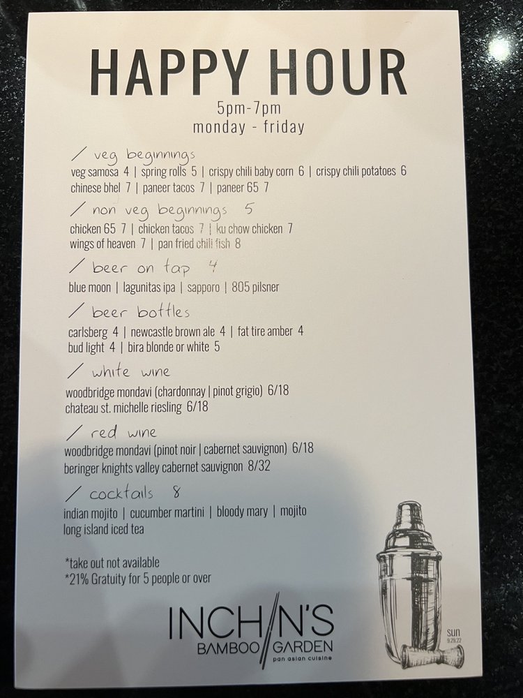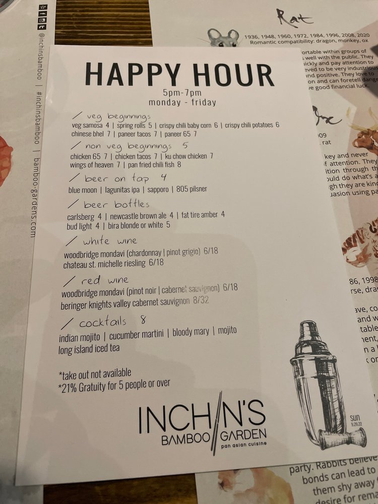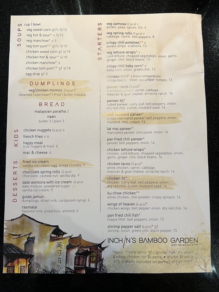 Inchin’s Bamboo Garden Menu (Update 2025)